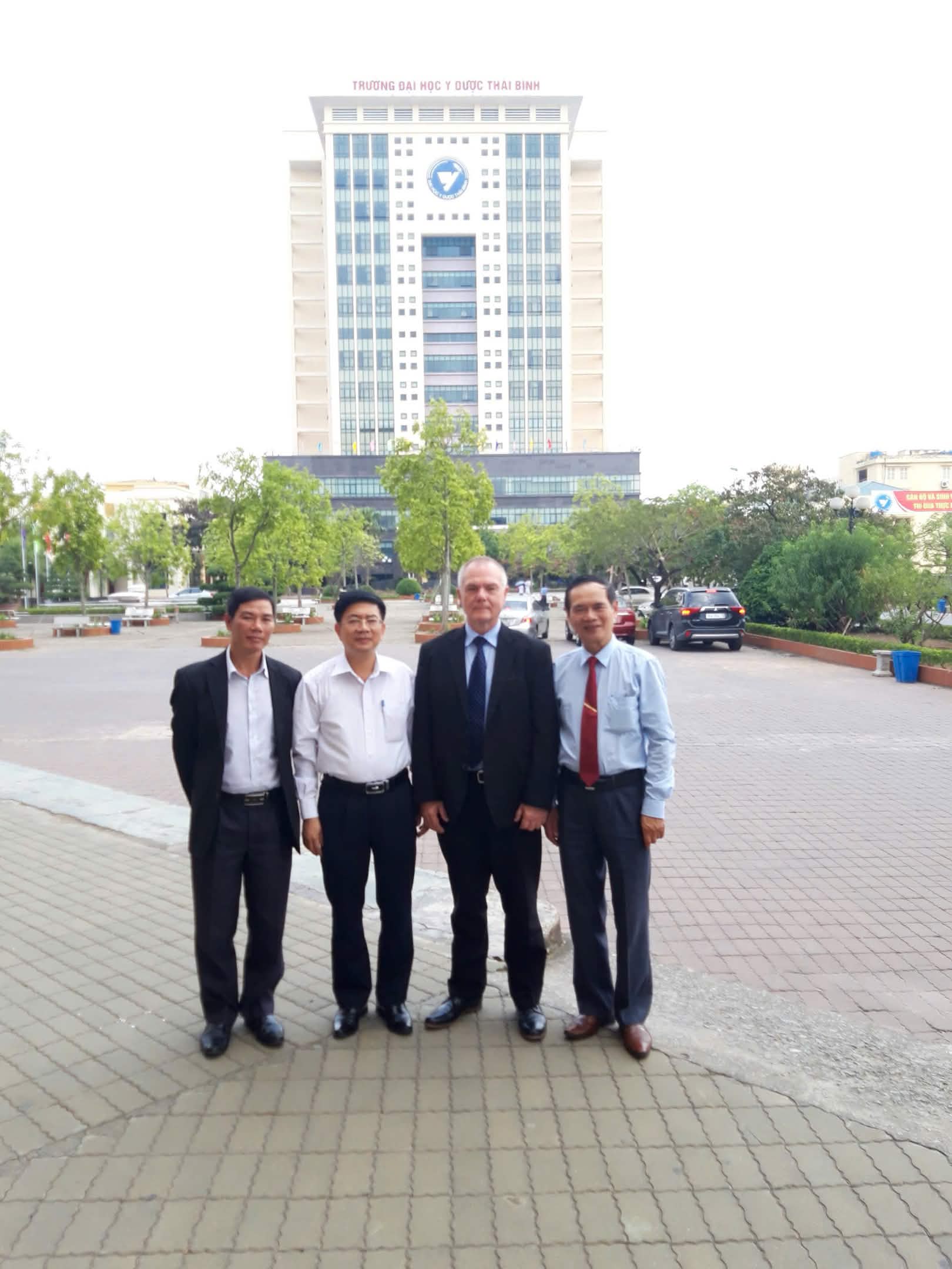 Viện trưởng Nguyễn Khắc Bằng cùng chuyên gia khoa học Đức làm việc tại Đại học Y Dược Thái Bình.
